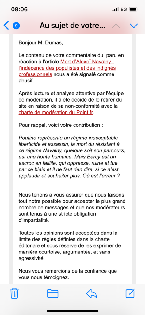 Par retour j’ai reçu ceci du Point :