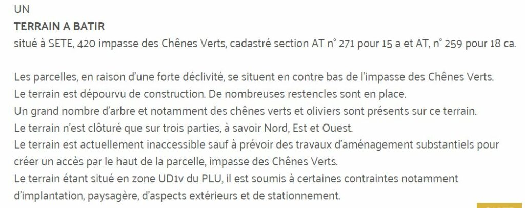 Pas un ne s’insurge contre le fait qu’un terrain à bâtir posant autant de questions ne peut pas être vendu sans avoir au préalable obtenu le permis de construire et épuisé le recours des tiers. Ils se disent sans doute que la vente judiciaire, organisée par le fisc, leur garantit, par fraternité, l’octroi du permis par les fonctionnaires de la mairie… entre fonctionnaires…