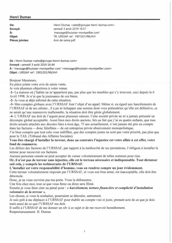 J’adore la formule de politesse de ce tartuffe : “mes sentiments distingués et dévoués”. Curieux dévouement.
