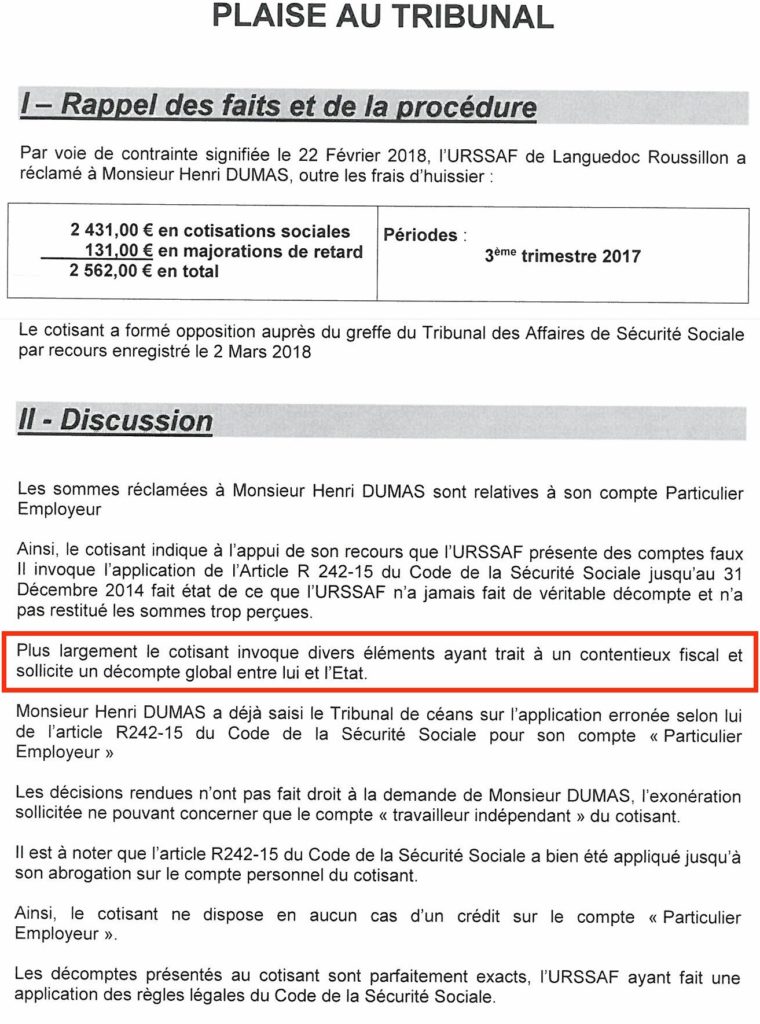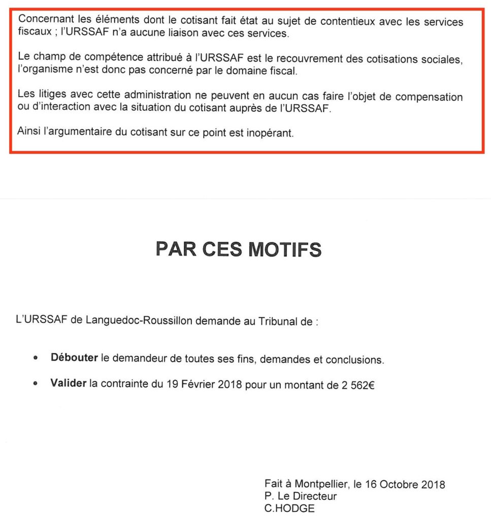 On notera dans le laïus de Hodge, c’est un détail, que l’URSSAF n’a jamais présenté les comptes des sommes que cet organisme me doit, même si elle affirme le contraire.