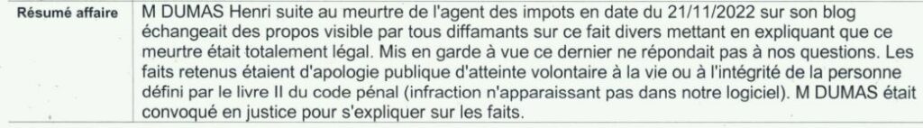 Voici donc le lien pour l’enquête publique concernant les poursuites engagées contre moi pour apologie de meurtre : LE LIEN.